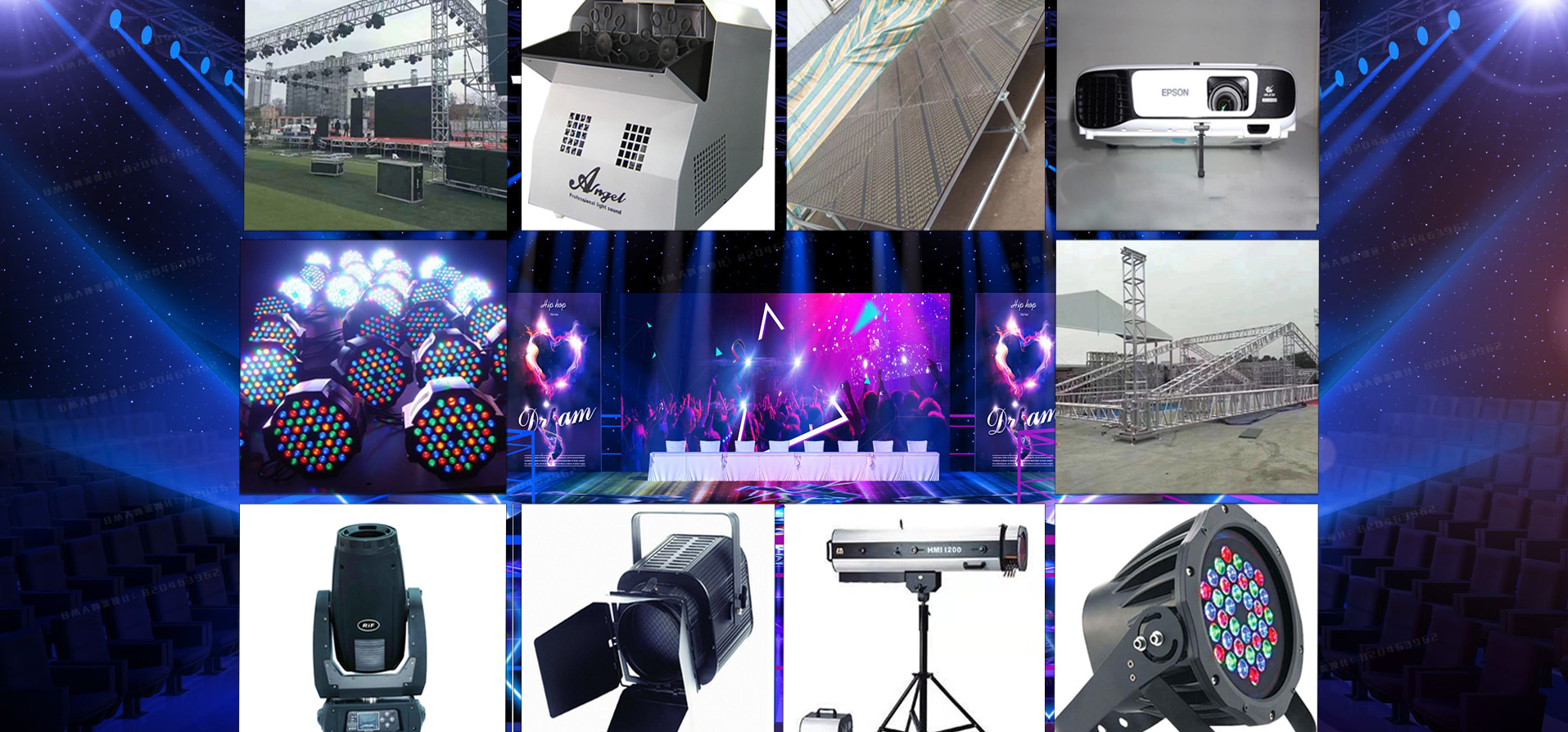 提供全程策劃執(zhí)行及燈光、音響、舞臺、背景、座椅、攝影攝像器材、氣球、拱門等設(shè)備租賃
